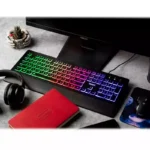 جنس بدنه این کیبورد از پلاستیک ABS مقاوم ساخته شده و با طراحی ارگونومیک و استراحتگاه مچ دست، تجربهای راحت و بدون خستگی را حتی در استفادههای طولانیمدت ارائه میدهد. وجود نورپردازی RGB با جلوههای چشمگیر، فضایی هیجانانگیز و خاص برای گیمرها ایجاد میکند.