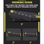 بدنه کیبورد از پلاستیک ABS مقاوم ساخته شده و در برابر رطوبت، گرد و غبار و نفوذ مایعات محافظت میشود. پایههای ضد لغزش و قابل تنظیم نیز به شما امکان میدهد زاویه دلخواه خود را برای راحتی بیشتر انتخاب کنید.